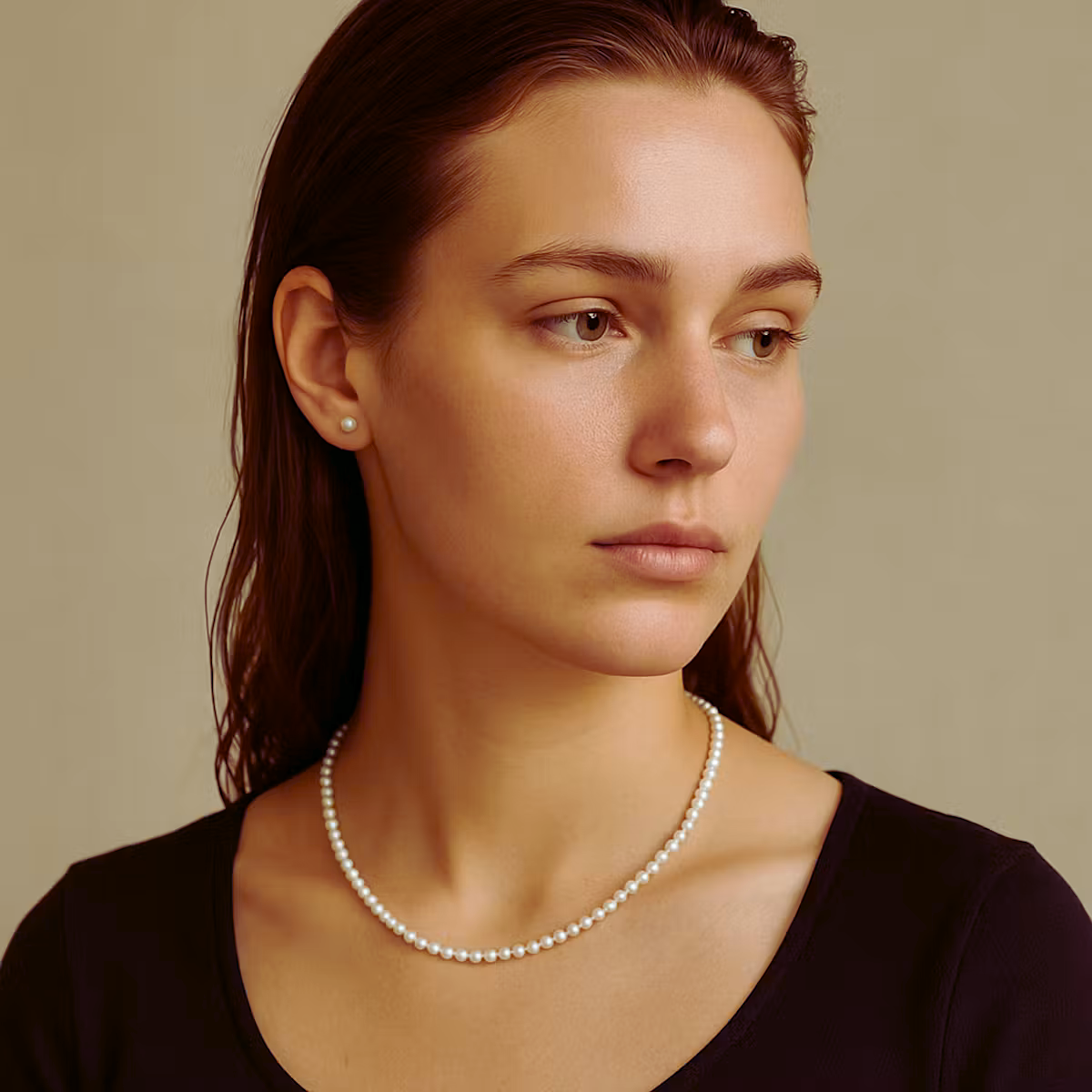Hermias Marka, 6–6.5 mm aralığında özenle seçilmiş AAA Kalite incilerden oluşan bu özel kolye, sade şıklığın en güçlü temsilidir. Işıltısını doğadan alan her bir inci, pürüzsüz yüzeyi ve dengeli formuyla boynunuzda zarif bir bütünlük oluşturur.